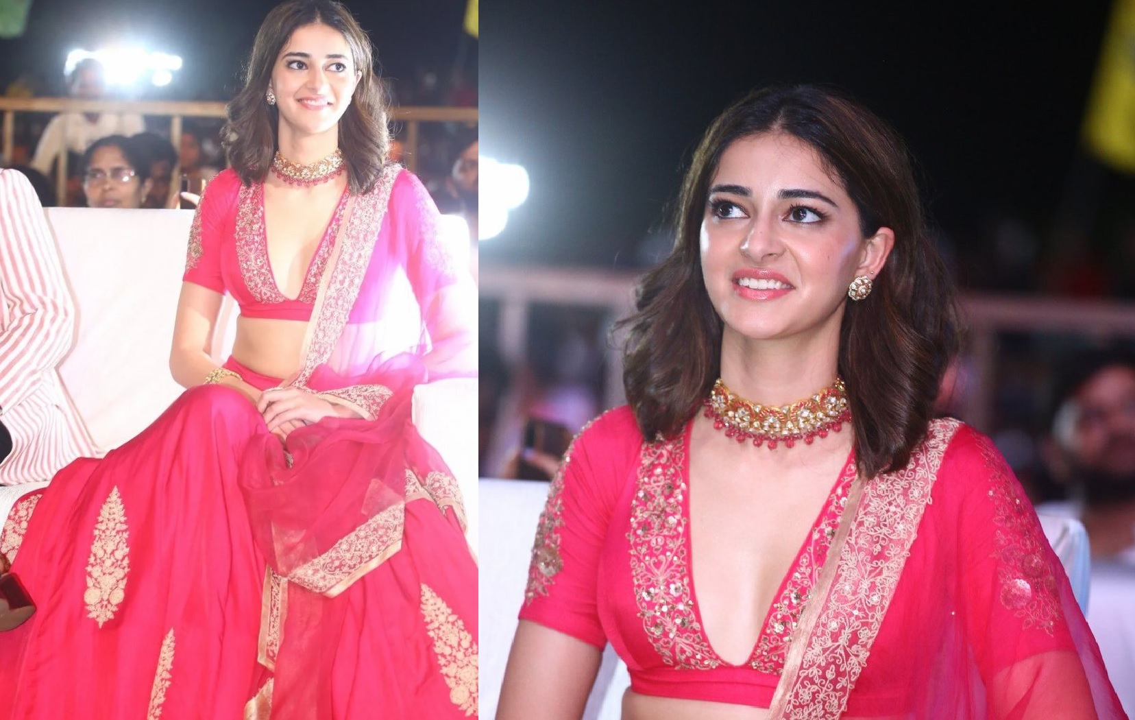 Ananya Pandey wore diamond choker on pre release event of Liger, she adorn herself with red color lehenga ,Her jewel choices included a pair of diamond earrings, a ruby studded diamond choker, a bangle and a ring. The choker was well customized with rubies and diamonds. the hanging rubies are been highlighted to the choker. diamonds are the perfect picks for every women, They set the standard for easygoing elegance while offering a surprising degree of wearability. Ananya Pandey looking gorgeous in diamond choker.
