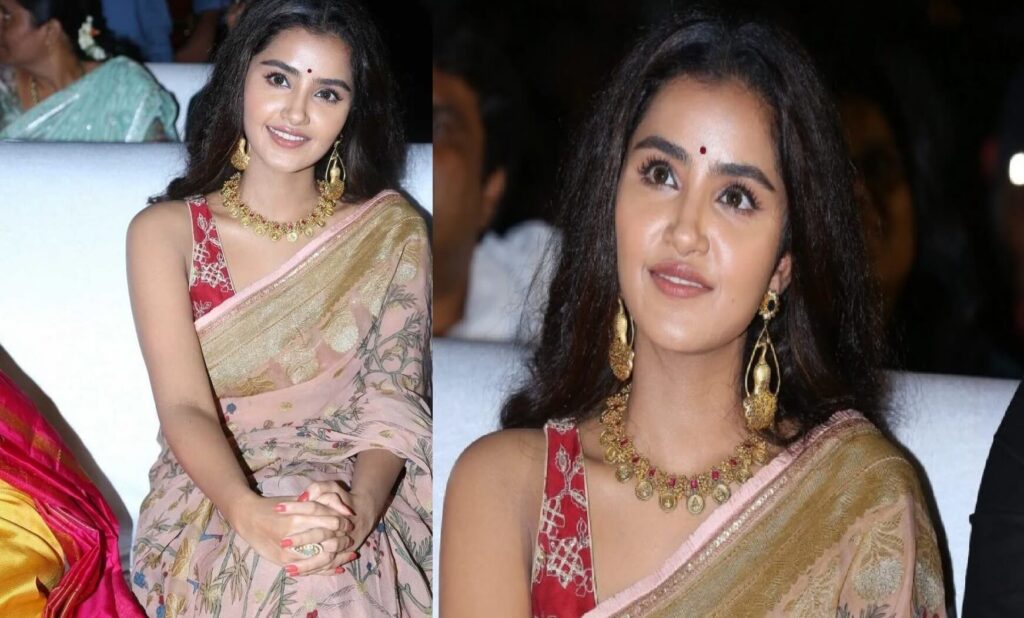Never leaves a chance to make head turns with her mesmerizing beauty. The curly hair queen’s fashion game is gearing up day by day and she often treats her fans to amazing pictures through social media. she catch on camera for recent movie Karthikeya 2 event. she was looking gorgeous in traditional outfit with beautiful jewellery . The necklace was designed with lakshmi kasu all over the chain and the floral design stud with rubies very unique , paired with matching earrings.
