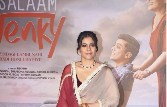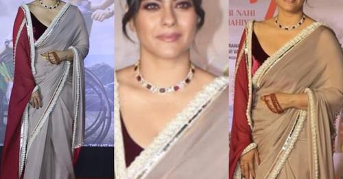 “Salaam Venky”, the film starring actress Kajol, is slated to hit the theatres on Friday, after an intense month of promotion. Before the movie’s release, the crew organized a special screening for some of the celebrities on the last day of the shoot, and based on their reaction, the movie seems to be a big hit with them. kajol wored grey color saree with a beautiful ruby studded diamond necklace.