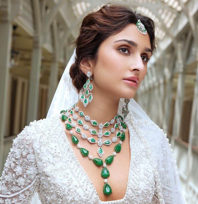 The diamond necklaces by Manish Malhotra High Jewellery are adorned with precious diamonds and mesmerizing emeralds. The brilliance of the diamonds and the vibrant green hue of the emeralds create a captivating contrast, adding depth and allure to the lariat necklace. It’s a harmonious combination that showcases the brand’s commitment to sourcing only the finest gemstones. The coordinated jewelry set by Manish Malhotra High Jewellery includes matching earrings and other accessories, offering a complete and coordinated look. This ensures that every element of your ensemble complements each other flawlessly, creating a cohesive and stylish statement.