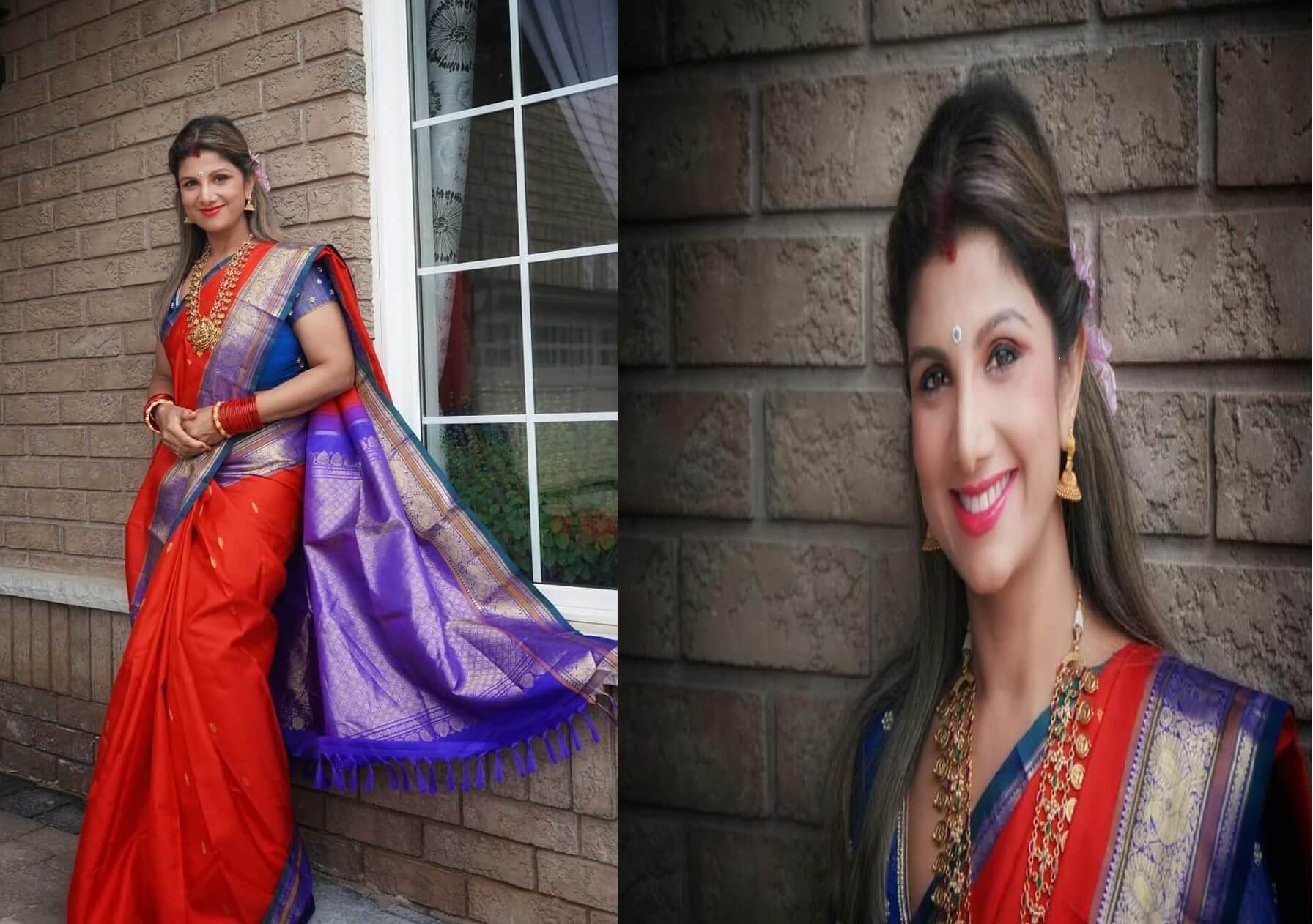Rambha adorn herself with 22k lakshmi devi kasu haram with jail pattern. The jail pattern is studded with precious rubies and emeralds stones and the pendant in the center of the haram gives unique look to the haram. The lakshmi devi pendant holds eye catching value as it was designed with floral pattern and hanging lakshmi devi kasu .This harm have proven to be popular in complementing any traditional wear paired with floral pattern buttas.
