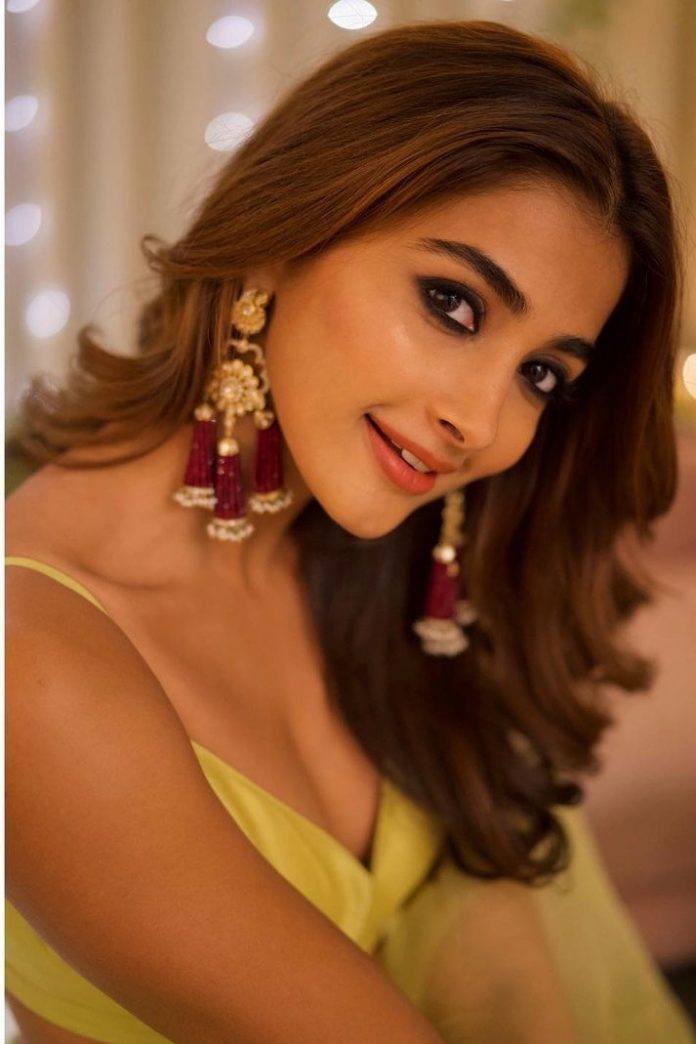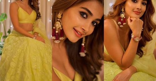 Pooja Hegde celebrated Diwali in a bright and colorful outfit . The actor was seen wearing a lime green lehenga set that had an off-shoulder design. The outfit was perfect for Pooja’s glowing skin tone and poker straight hair, which she styled with loose waves. she wore a pair of ruby studded earrings, a polki bracelet and a ring by Anmol Jewellers is a famous Indian jewellery brand. These earrings are well crafted with precious rubies and in the Victorian style with floral design. The earrings are well crafted with precious rubies and beautifully decorated with floral designs.