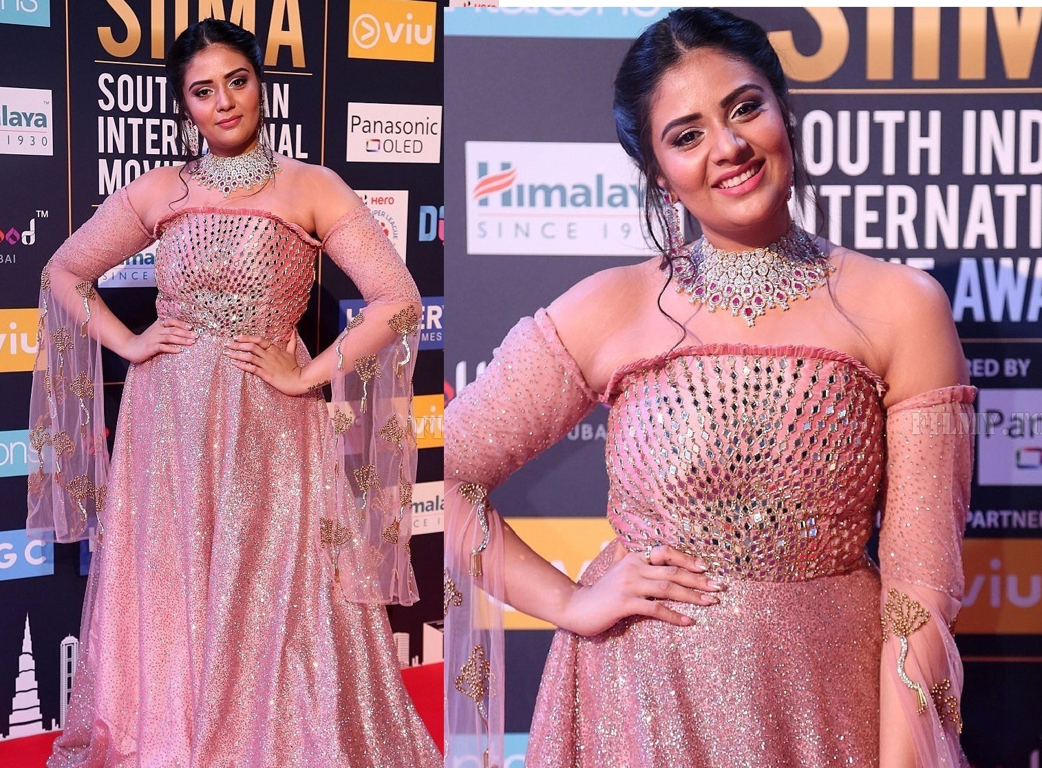 Sreemukhi in looking Gorgeous at Siima film Event. She adorn herself with diamond necklace. This beautiful diamond necklace was well crafted with precious diamonds in floral pattern.A diamond journey necklace is a personal piece of jewelry that can symbolize a journey through life and love. It is a great way to celebrate a major milestone such as a celebration event or anniversary.