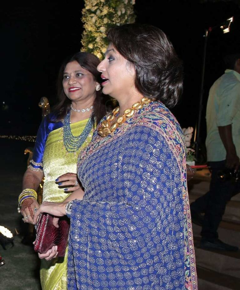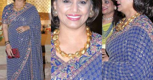 Pinky reddy was spotted wearing a pale blue saree. We agree with the people who said, that’s what we can also learn from her in the wedding appearance. She completed the look with a gold statement necklace, an earring set, a pearl ring and some bracelets. This necklace is a must-have for any fashionista. It’s so glamorous and perfect for any occasion
