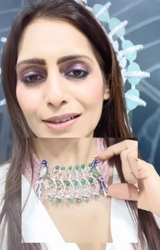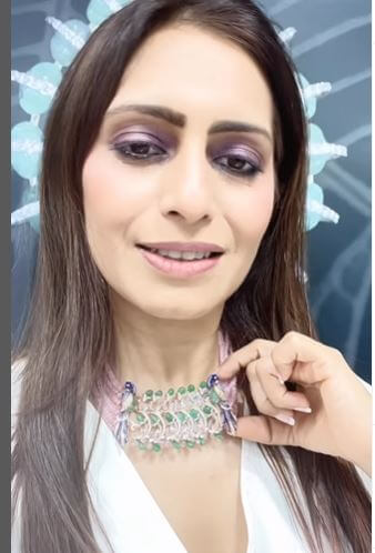 This Diamond necklace is a truly a work of art. The floral and peacock design , with colorful purple color and emerald accents is absolutely stunning . Besides to the unique design The multilayered and stylish beads also add an extra touch of elegance to the necklace.
