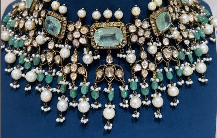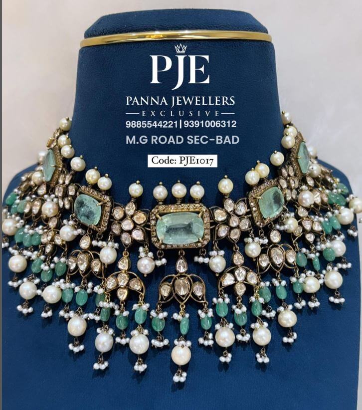 so why wait ? step into elegance today with this Victorian choker necklace with emeralds and pearls. Available now @ Panna Jewellers @9391006312